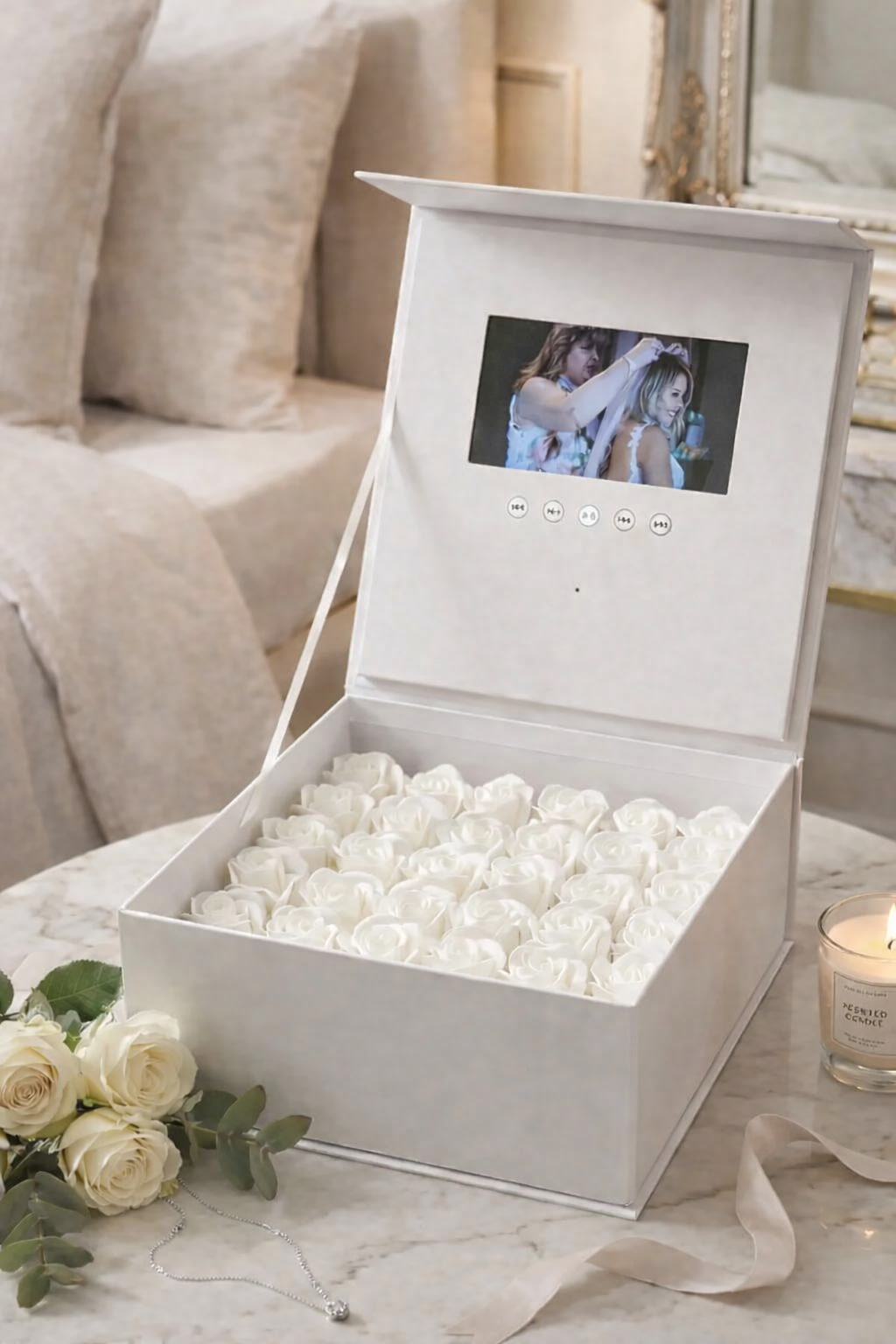 I was looking for something truly unique, and this gift box delivered. The roses were gorgeous, and the ability to personalize the digital screen with my own content was the best part. A truly thoughtful and special gift